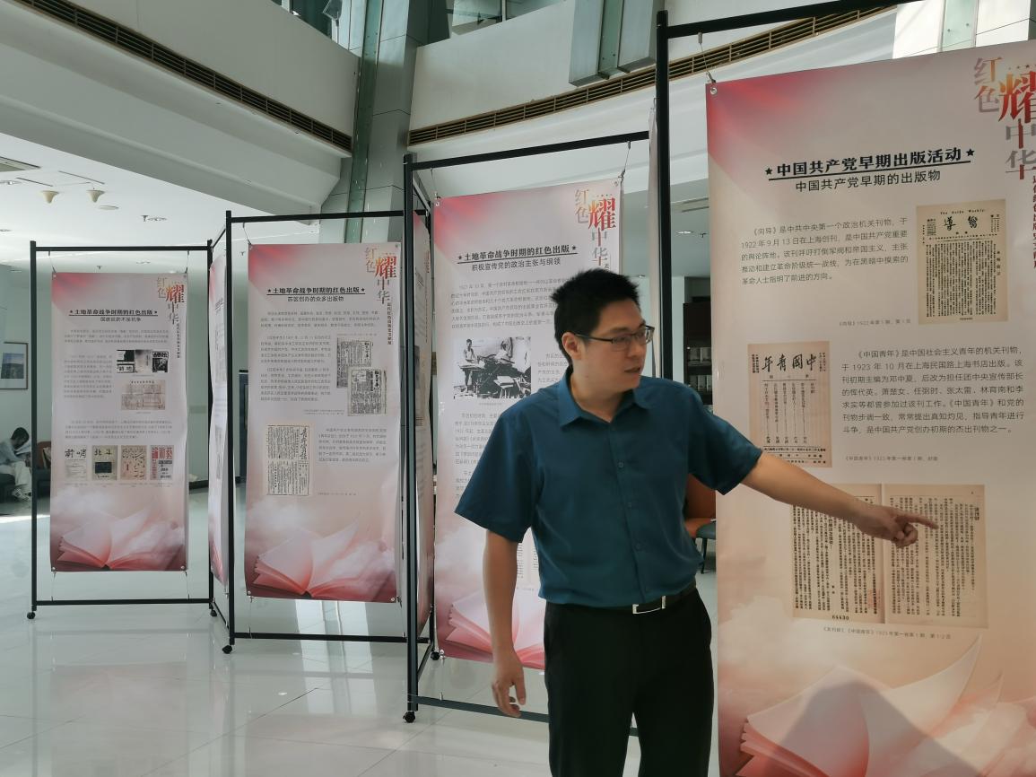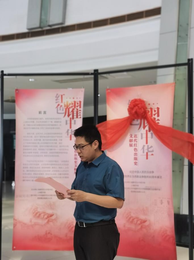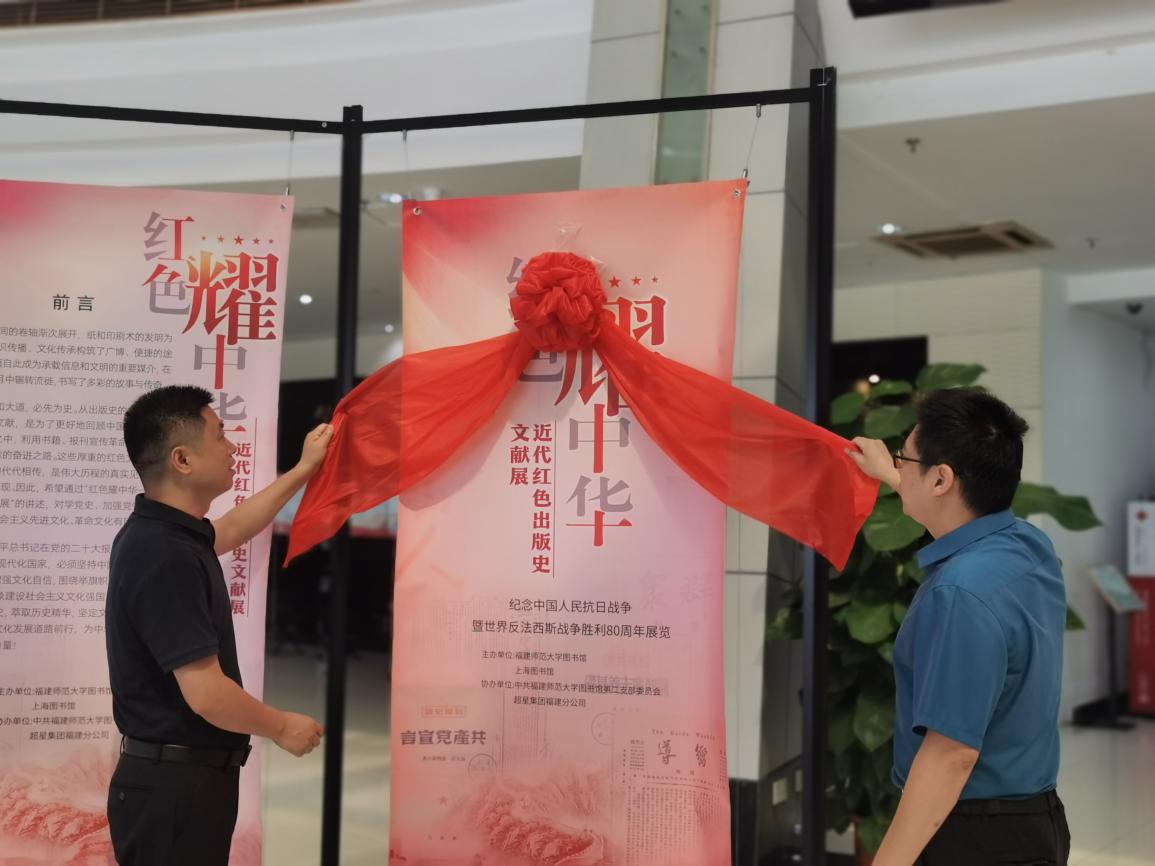 2025年9月4日上午,中共福建师范大学图书馆第二党支部委员会(以下简称“图书馆第二党支部”)在又玄图书馆成功举办以“红色耀中华——近代红色出版史文献纪念中国人民抗日战争暨世界反法西斯战争胜利80周年展”观摩学习为主题的党日活动。图书馆第二党支部全体党员参加活动,超星集团福建分公司总经理孙科作为特邀嘉宾出席。图书馆吴巍巍馆长出席活动并作指导讲话。