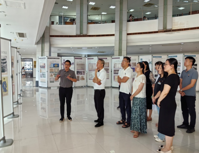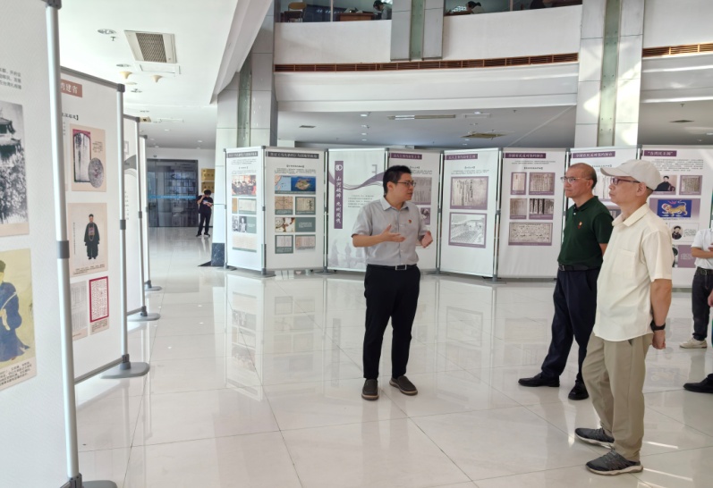 近日,福建省社会主义学院、我校协和学院、传播学院先后组织部分党员莅临旗山校区图书馆二楼大厅,参观在此举办的“烽烟淬魂 共铸中华——纪念中国人民抗日战争暨世界反法西斯战争胜利80周年和台湾光复80周年图片展”。馆党委副书记、馆长吴巍巍研究员作现场讲解。