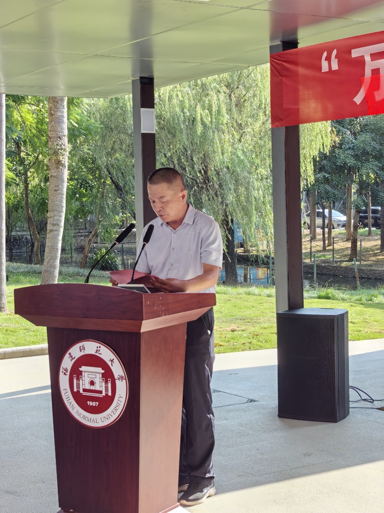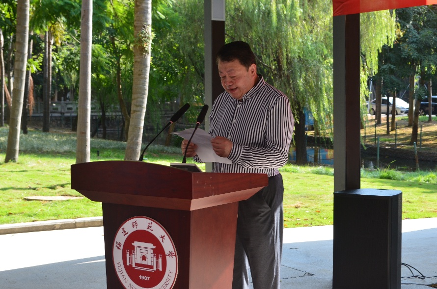 校党委统战部部长、校友会秘书长林建荣首先致辞,他在致辞中回顾了吕振万先生伉俪一生捐资助学、为福建教育公益事业做出的巨大贡献,并特别提到了先生伉俪早年慷慨捐资建设福建师大仓山校区吕振万楼的先进事迹,他代表学校再次对吕振万先生伉俪及其后裔的善举表达由衷的敬佩和感激之情。