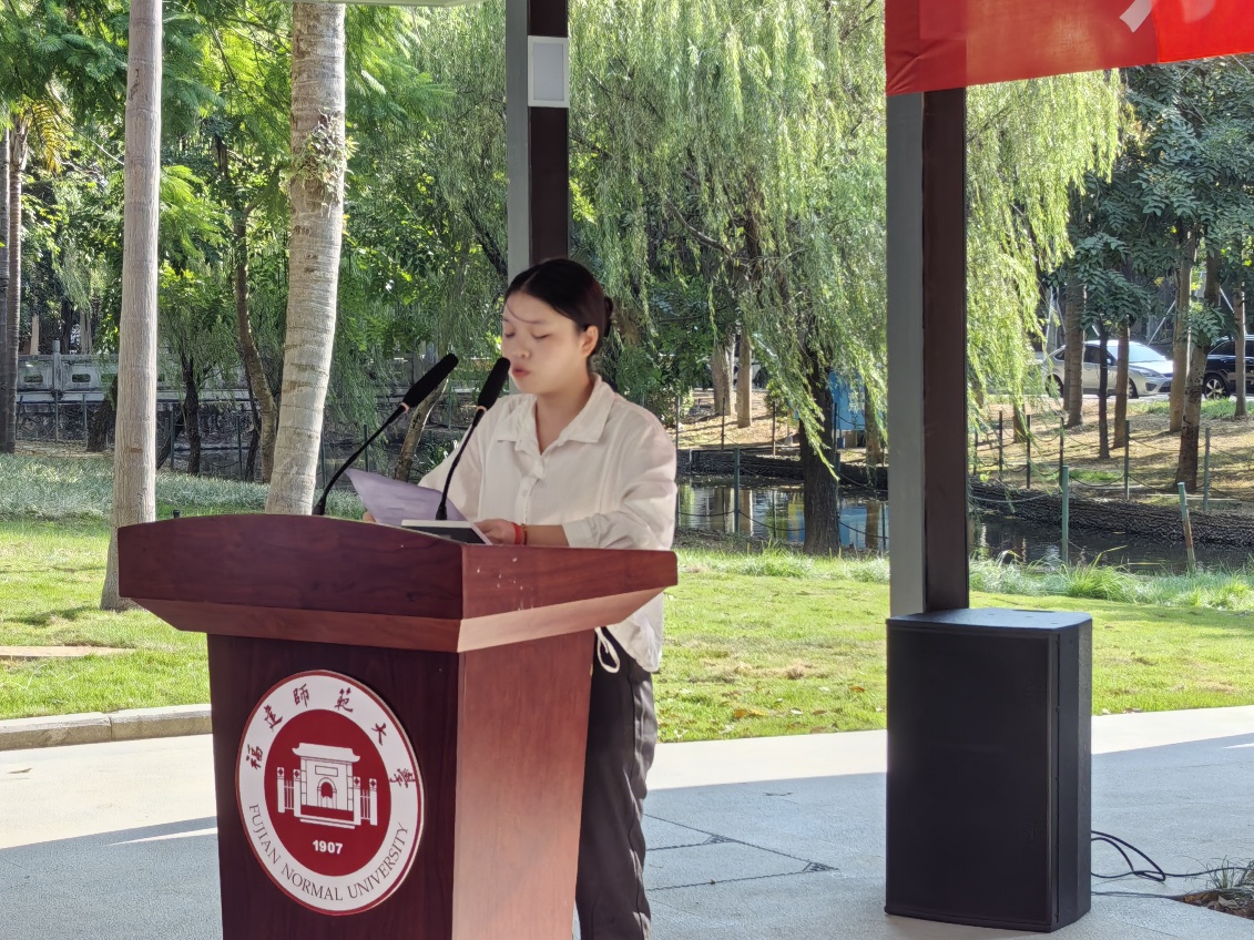 学生代表、海外教育学院2023级汉语国际教育专业苏凤岚同学发言,她在发言中表示,万珍文化园不只是一处景观,更是一份“精神指引”。它让我们明白,教育的力量从不只在课堂,更在前辈与家族用行动筑起的温暖里。未来,我们会珍惜这片空间,在课堂上深耕专业,在文化园里静心求索;更会以吕振万先生伉俪及其家族为榜样,把这份“感恩与奉献”的种子埋在心里,待将来有能力时,也为教育、为社会尽一份力。