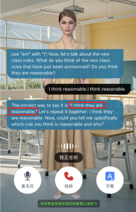 用户在练习过程中,AI口语练习智能体能识别用户练习中的语法错误,实时提供精准纠正与解析,帮助用户规范语言表达。